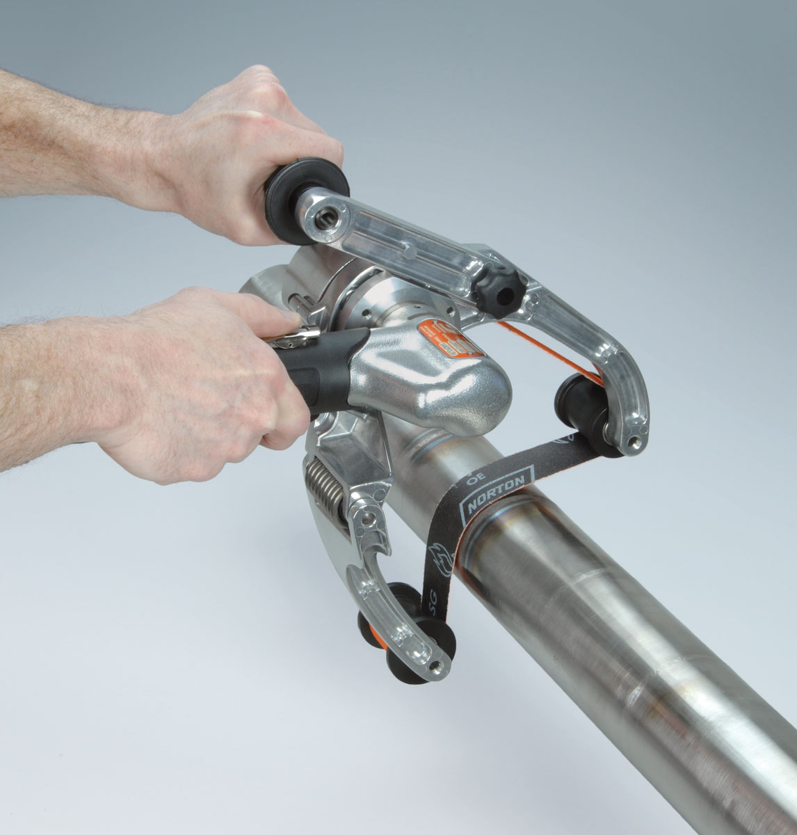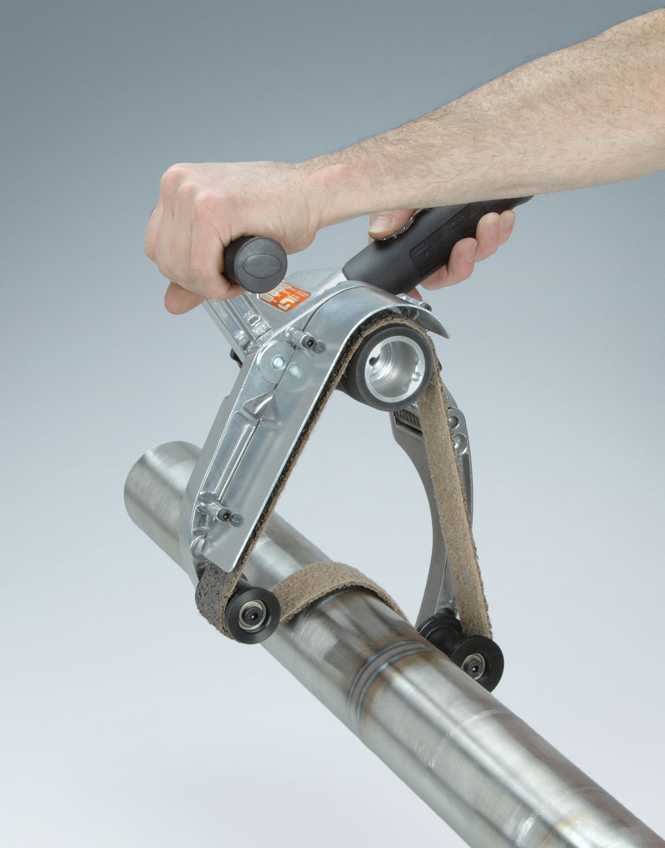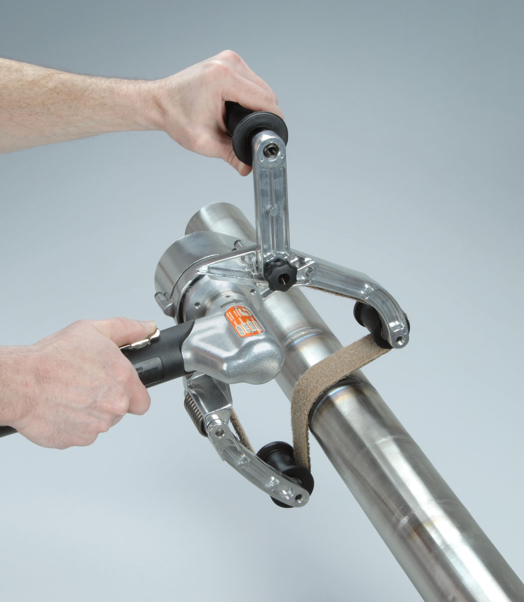 - Air-powered Pipe Belt Finisher achieves top-quality finishes on rounded surfaces in record time! Sand, blend, surface condition, polish and finish on metals such as stainless steel and aluminum. An essential tool for metal and railing fabrication, plus pharmaceutical equipment, food industries and more!
