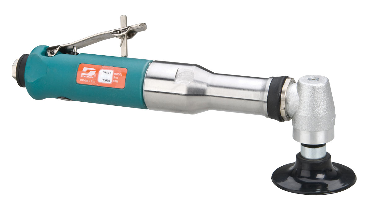 - Built-in speed regulator, rear exhaust muffler, lever throttle. Heavy-duty gear head. Includes sample 9-micron micro-finishing film discs. Optional 54585 Side Handle Assembly available.