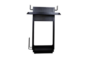 The work station for Mirka Dust Extractor 1230 is a compact shelf and hook system. The functional work station has dedicated space for Mirka cases and abrasives as well as hooks for machines and hose storage. The work station should be fastened to the dust extractor with the case fastening accessory for DE 1230, that needs to be ordered separately. Note that pneumatic machines also need the Pneumatic Box for DE 1230.