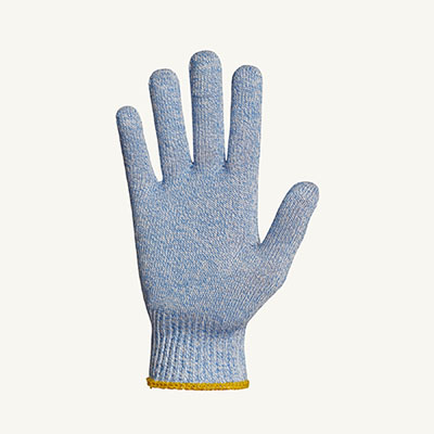 Food safe extreme cut protection with touchscreen compatibility in a dexterous blue knit to help detect food contamination