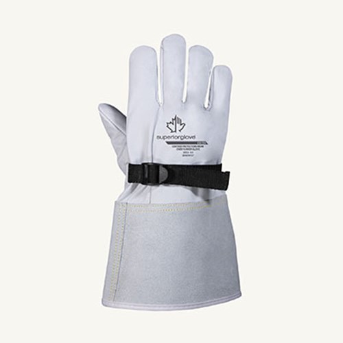 The Endura® CG1SS cover gloves are tailored to fit over the Line Pro NR1BR36 Class 1 medium voltage rubber gloves for work with energized equipment. Their keystone thumb design maximizes durability and dexterity, while an adjustable nylon black strap provides a snug fit when worn with rubber liner gloves.