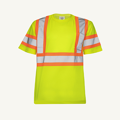 The Superior® TSPYX hi-viz yellow traffic t-shirt offers cross retroreflective stripes for increased visibility. Made with a breathable, non-shrinking soft polyester, this t-shirt offers 2-inch retroreflective stripes on front and back for compliant 360° visibility. The fabric is soft and breathable for all-day comfort. Also available in hi-viz orange TSPOX