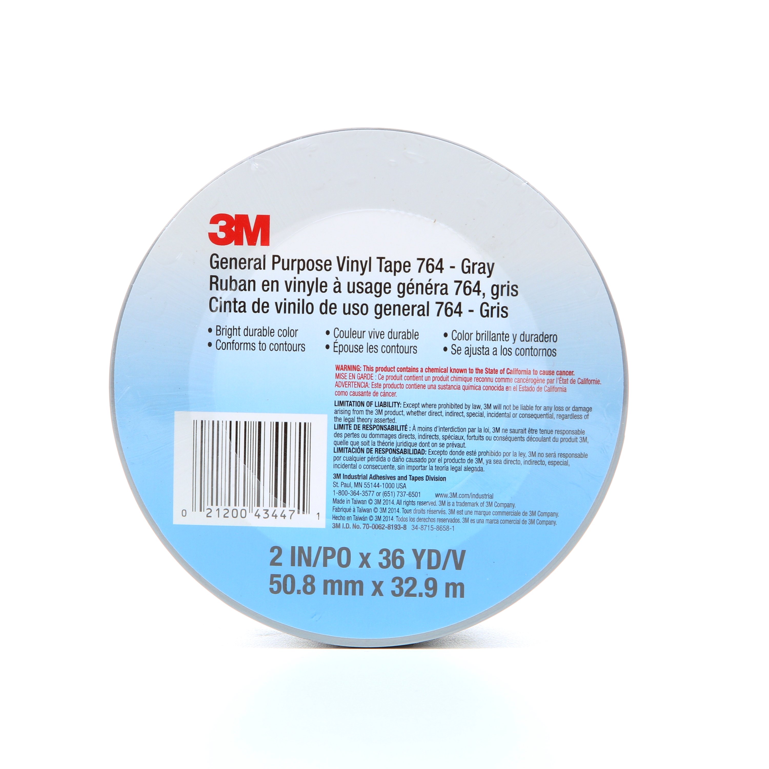 3M™ General Purpose Vinyl Tape 764 Gray, 2 in x 36 yd, 5.0 mil, 24 per case